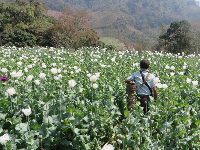 ミャンマー北東部シャン州のケシ畑=2023年、UNODC 提供