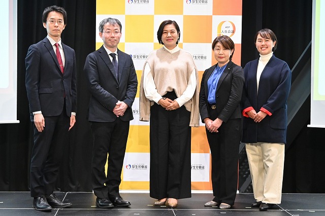 自分の望む最期の医療・ケアを 青木さやかさんも出席し「人生会議」イベント 青木さやかさん(中央)ら「人生会議」イベントの登壇者