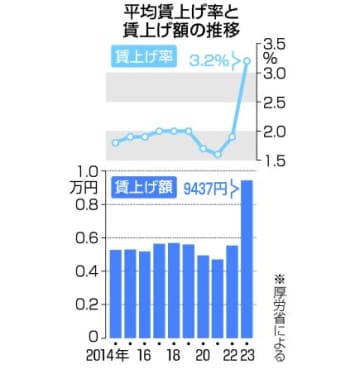 23年賃上げ、月平均9437円 過去最大も実質はマイナス続く 2023年11月28日 OvO 共同通信 47NEWS 厚生労働省が28日発表した2023年の賃金引き上げ実態調査によると、基本給など月額所定内賃金の全産業…… さらに見る