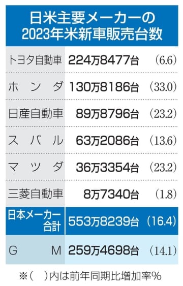 【ニューヨーク共同】日本の自動車メーカー6社が3日発表した2023年の米新車販売台数は前年比16.4……