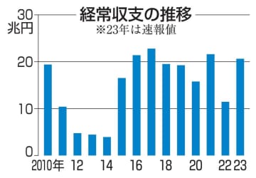経常黒字92%増の20.6兆円 23年、貿易赤字が大幅に縮小