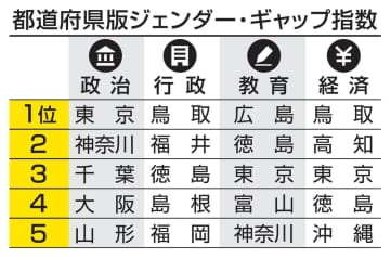 政治の男女平等、全国で向上 統一選で躍進影響、均等なお遠く 2024年3月8日 OvO 共同通信 47NEWS 上智大の三浦まり教授らでつくる「地域からジェンダー平等研究会」は8日の国際女性デーに合わせ、各地域の…… さらに見る