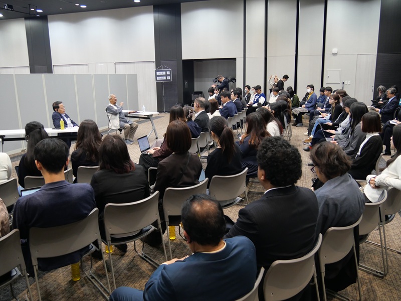 質疑応答の時間では、参加した若者の「平和を目指したいが現実の前に無力感を感じることがある。そのときはどうしたらいいか」といった質問には「人類は息を引き取るまでアクティブでクリエイティブであるべき」(ユヌス氏)と常に行動的でいるべきとの見方を示し、「高齢になってからいかに働くべきか」という問いには「前職で使ったスキルを第二の人生でも使ってほしい。知識や豊かな経験は有益です」(ウィラユダ氏)とアドバイス。若者らは賢人の丁寧な回答にうなずいたり、熱心にメモを取ったりしていた。