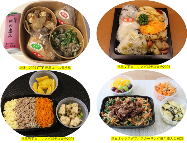 海外で行われた卓球、カーリングの大会で日本代表選手に提供。お弁当には輸出した日本産米や和牛を使用している