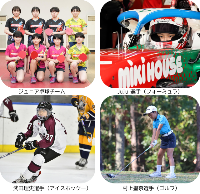 「ミキハウススポーツクラブ」は、トップアスリートだけでなく、これから世界へ羽ばたくジュニア選手まで幅広く支援しています。さらに、社内行事の運営を選手と一緒に行い、大会時には社員が応援に駆け付けるなど、日常的に選手と社員が交流する機会を大切にしています。「選手がメダルを持って本社や店舗へ結果を報告すると、社員はその姿に勇気をもらい、選手は応援や祝福の言葉を受けてさらなるモチベーションにつなげています!」(広報部)