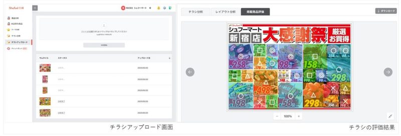 2025年10月に提供を開始したβ版から大幅にアップデート。β版での検証を通じて得られた知見をもとに、今回、 AIチャットボットによる販促企画支援、チラシの読み込みで解析する公開前チラシの評価機能、テーマやキーワードから過去のチラシデータを画像で検索・参照できる機能などを搭載し、有償での本格提供をスタートする。これにより、企画立案から制作、振り返りまでの一連の販促業務をデータと AIで支援し、経験則に依存しない、再現性の高いデータドリブンな販促活動の実現を目指していく。
