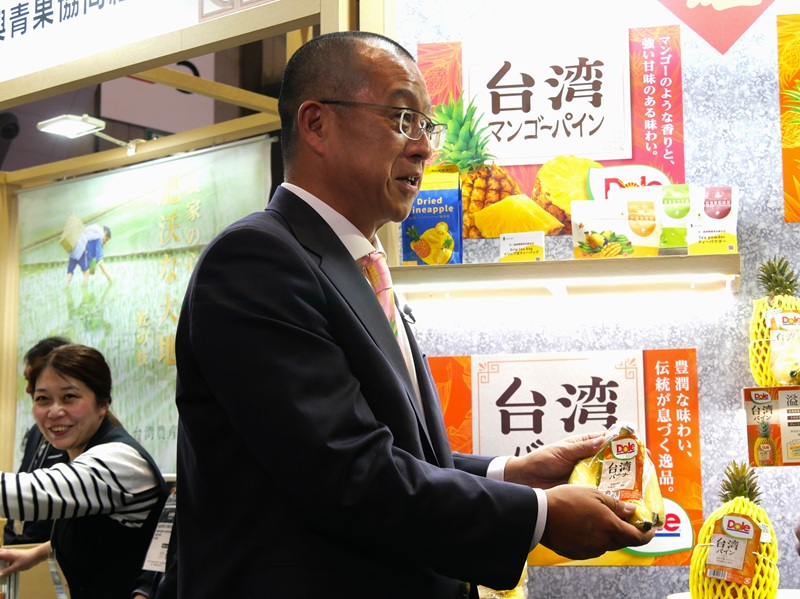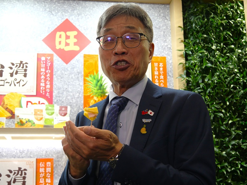 フルーツ生産販売大手ドール(Dole Japan、東京)の青木寛社長は3月10日、東京ビッグサイトで同日開幕の「FOODEX JAPAN2026」(第51回国際食品・飲料展、3月13日まで)の台湾パビリオンを訪れ、同パビリオン主催者として来日した台湾農業部の陳駿季(ちん・しゅんき)部長と意見交換し、パイナップルやバナナなど台湾産フルーツの日本での消費拡大にさらに力を入れる考えを示した。