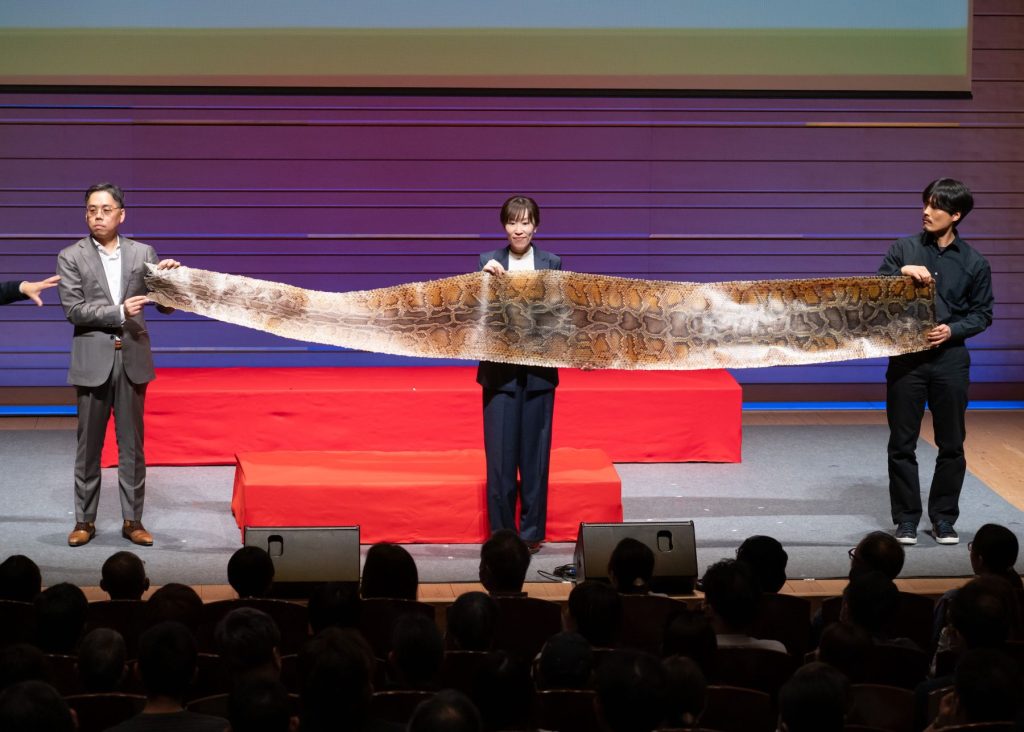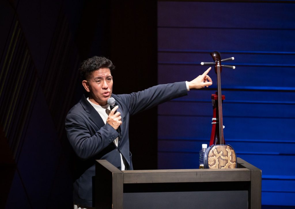 これに続き、沖縄県立芸術大学准教授の遠藤美奈氏と琉球大学の特命准教授山田典子氏が、それぞれの役割を表明した。世界でも類を見ない「琉球芸能専攻」を擁する県立芸大は今回のプロジェクトでは音楽文化・演奏などの専門知識を提供。遠藤氏は、沖縄音楽の多様性を次世代へつなぐことが大学の使命であるとし、研究者と実演家、製作者の知識を相互補完する重要性を説いた。県内唯一の国立総合大学である琉大は、幅広い分野の専門知を生かし多角的に協力。山田氏は、三線文化の持続可能な未来を創り出す決意を語った。産官学が連携し、三線を単なる「地域の宝」から「未来へつなぐ文化資産」へと昇華させようとする熱意が、会場を包み込んだ。