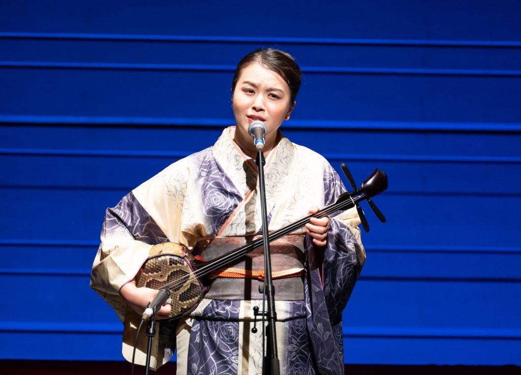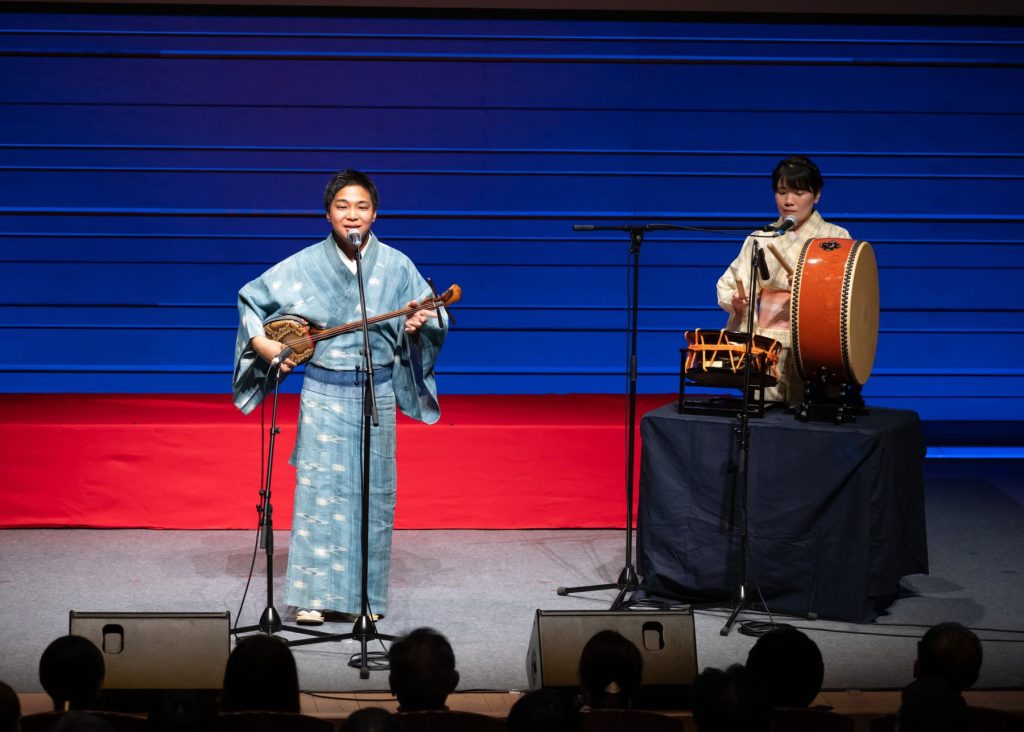 舞台では、次世代を担う実演家たちにより、琉球古典音楽、沖縄民謡、沖永良部民謡、八重山古典民謡・古謡の四つのジャンルが披露された。古典の独唱「赤田風節」(歌三線・親川遥)の静ひつな節回しから、舞踊「稲まづん節」(舞踏・山里静香/歌三線・新垣俊道、親川遥)の優美な踊り、民謡「廃藩ぬ武士」(歌三線・仲宗根創)の時代に翻弄される悲しさ、民謡「ひやみかち節」(歌三線・仲宗根創/太鼓・豊里美保)の民衆の力強さ、沖永良部民謡「永良部百合の花」(歌三線・前田博美/太鼓・豊里美保)の本土の民謡を感じさせるこぶし、そして八重山古謡「とうばらーま」(歌三線・小渡大海/囃子・豊里美保/笛・新垣俊道)の哀愁漂うしみじみとした響きまで、それぞれの「しま」が育んできた音色がホールを彩った。聴衆は、第一部で学んだ楽器の構造や職人のこだわりを念頭に置きながら、一音一音に込められた歴史の重みと、未来へ向かうエネルギーを感じ取っていた。