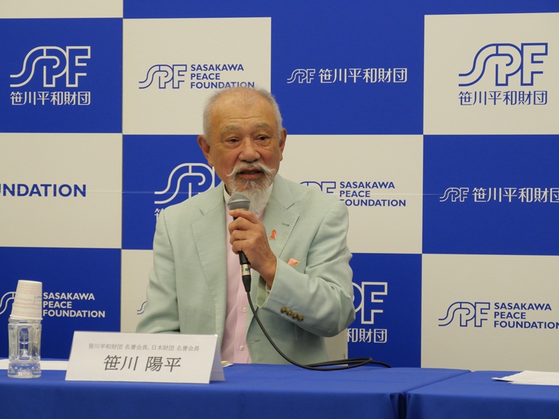 会見で、笹川平和財団名誉会長・日本財団名誉会長の笹川陽平氏は、自身が、2013年に日本政府からミャンマー国民和解担当日本政府代表の任命を受け、少数民族と政府との複雑な闘いの調停に取り組んできたことを挙げた。そして、「世界各地でさまざまな形態の紛争が起きており、表向きには各国の首脳が解決に向けて会議をしているが、その陰には、和平調停の専門家たちがきちんと下話をつけているということがよく見受けられる。紛争解決の一番簡単な方法は武力行使をすること。しかし、武力なしで、あるいは武力が行使されていてもそれを調停によってやめさせ、市民がむやみに殺されることを最小限に防ぐために、調停の専門家の存在が必要だ」と述べた。そして、「世界の情報をしっかりと把握すること、人的ネットワークを作ることが重要。(政府としての肩書がある)肩書外交ではできず、民間レベルだからこそできる率直な議論や、立ち入った支援がある」と、今回センターの立ち上げの経緯を説明した。