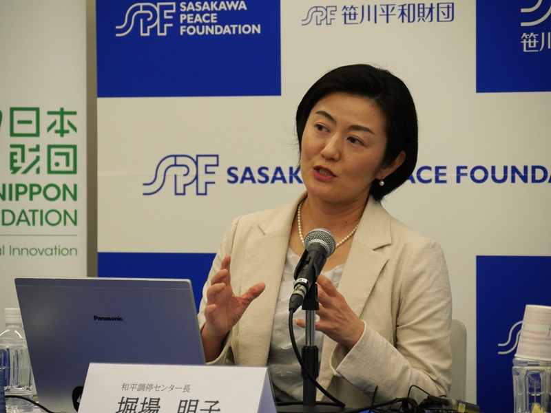 和平調停センター長に就任した笹川平和財団の堀場明子氏は、インドネシアを中心とした東南アジア専門で長年、和平調停支援に取り組んできた実績を持つ。「いろいろな言語ができる研究者と、われわれも一緒に現地に行き、混とんとしている世界の平和・安定のために日本として何ができるかを分析し、平和のためのどのような介入ができるのかを検討していきたい」。さらに、「われわれは、今、大混乱に陥っている中東もアジアと考えている。“中東”という考え方そのものが、植民地支配からのロンドンから見て“東”という視点。日本からすると、今のアラブの国々を“西アジア”ととらえている。“1つのアジア”として、アジアがもっと連携して平和のために何かできるのではないかと考えている。世界の奥まったところでも、ニーズがあれば、現地に行って何ができるか考えていきたい」と述べた。