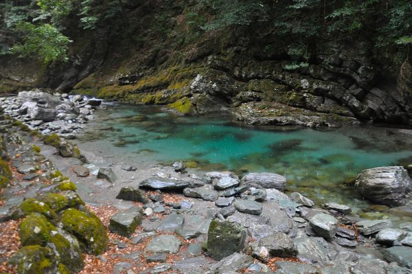 安居渓谷・水晶淵に到着する。山奥の天候は移り気で、雨は小降りになったかと思うと、突然土砂降りになったりする。小降りの時に見た川は、三大仁淀ブルーの名を裏切らなかった。透明性と鮮やかさを共に両立させている奥深い青の世界が目の前にある。