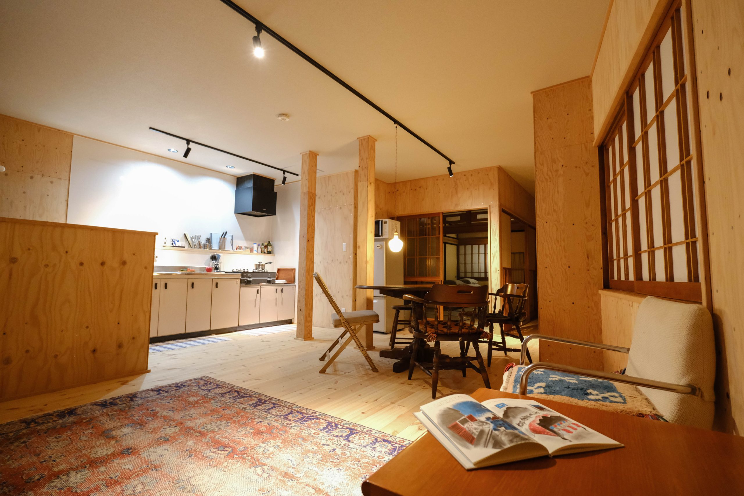 現在住むのは、2軒目のゲストハウスとして運営する元ペンションの一軒家。1階をワンフロア貸し切りの宿とし、オーナーの美濃出さんファミリーが2階に住む。そして2025年春には、JR中央本線の富士見駅近くの商店街に3軒目のゲストハウスをオープン。こちらは1階がワインバーで、2階を借り受けてゲストハウスとして貸し出している。「富士見駅近くに宿泊施設が少なかったことや、山のふもとのゲストハウスまでタクシーを使って来てくださる人もいらっしゃって。駅からアクセスのよいところに3軒目をオープンすることができ、地域の方々のご協力をいただきながら運営しています」