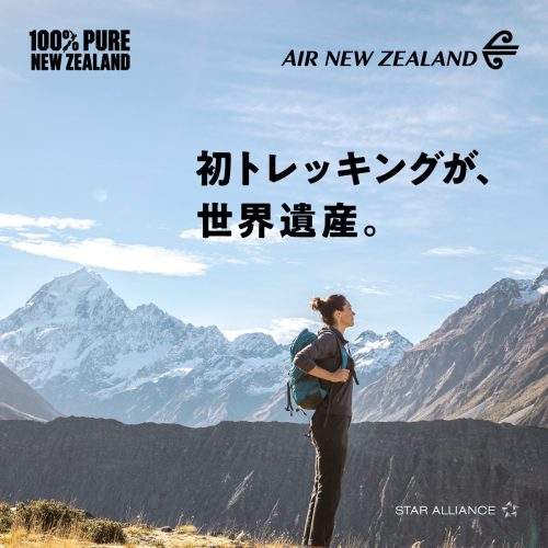 キャンペーンは、長期休暇の取得が難しい日本の旅好きに、ニュージーランド航空による期間限定運賃セールを実施、直行便で行くニュージーランドで絶景、感動体験、グルメなど、世界の魅力を一気に楽しんでもらおうというもの。世界各地に散らばる多種多様な観光体験が1つの国に凝縮された世界的にも珍しい特徴を持っており、国内を巡るだけで、まるで”地球旅行”のように複数の国やエリアを訪れているかのような旅ができる。