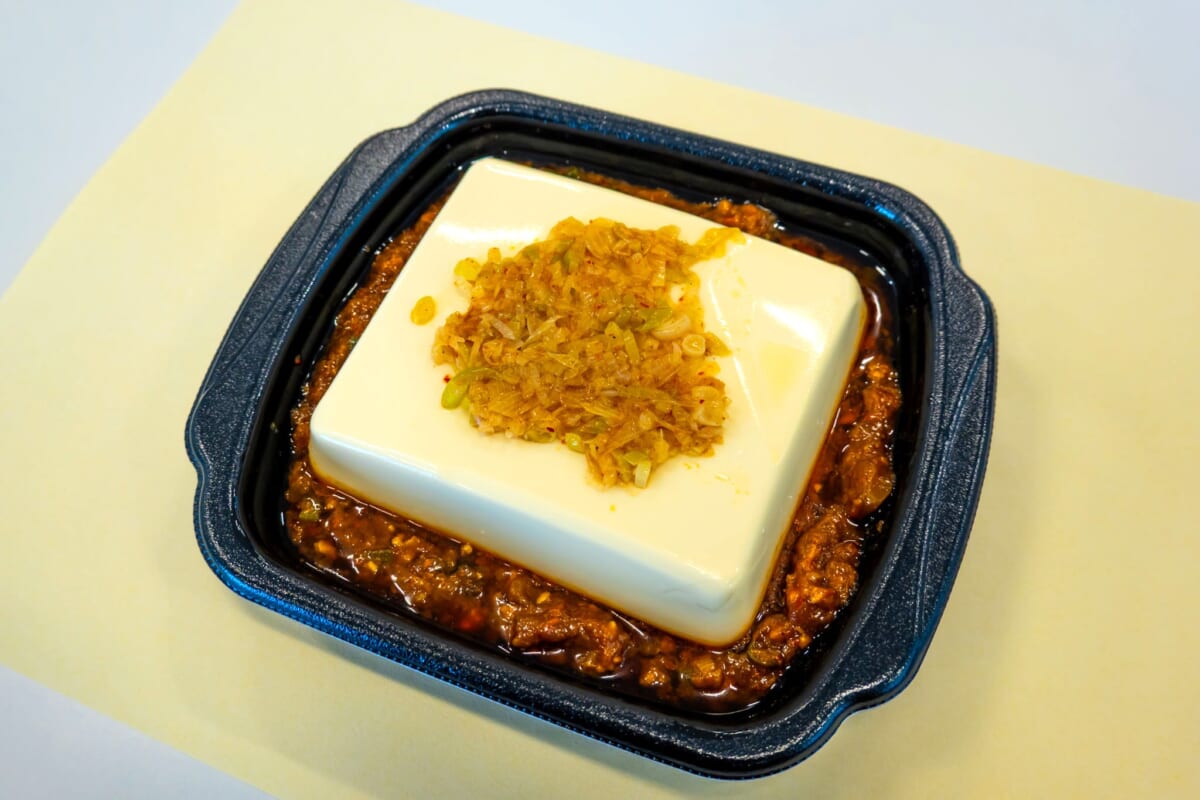思わず二度見してしまうほどにインパクトがある本惣菜は、視察メンバーが実際に現地で味わった台湾の麻婆豆腐の多くが絹ごし豆腐を使用していることから気づきを得て、絹ごし豆腐を丸ごと1丁使用して崩して食べる新たなスタイルで商品化したもの。成城石井の売れ筋商品の一つ、「成城石井自家製 四川山椒ピリ辛麻婆豆腐」の要素を踏襲しつつ、ネギラー油で台湾要素をプラスされています。ボリュームも満点で、食べ応えも抜群です。