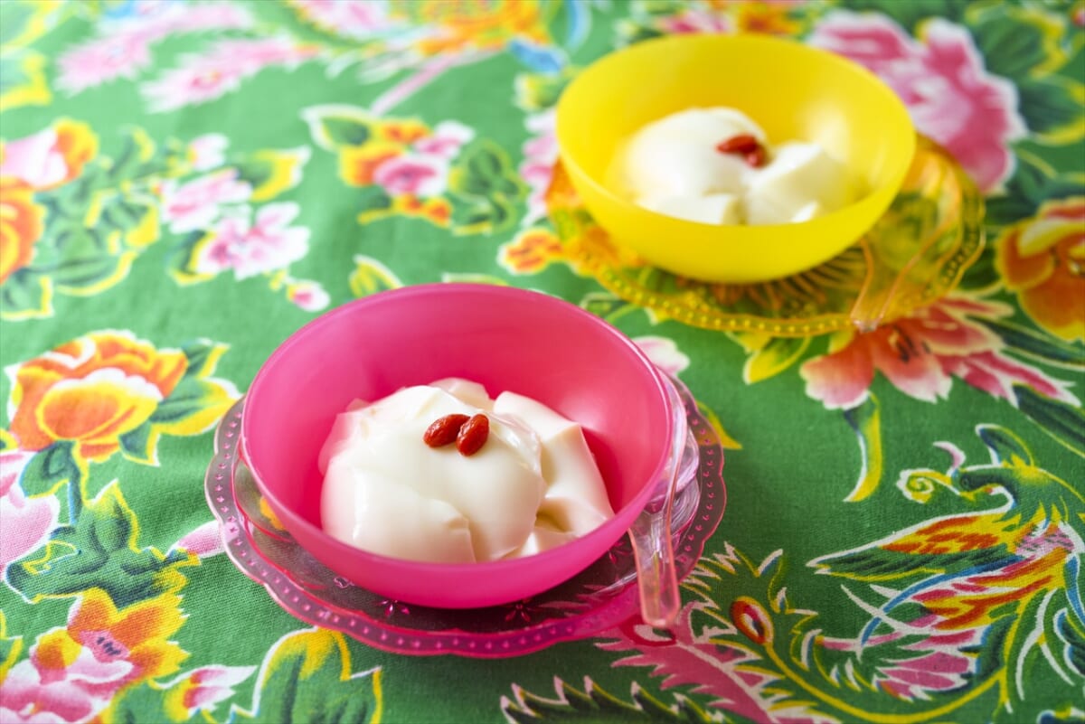 一般的に使われることが多い「杏仁霜(キョウニンソウ)」ではなく、杏子の種を24時間じっくり漬け込んでできる抽出液を使った、杏仁の風味をより感じられるデザート。牛乳や生クリームが混ぜ込まれていて、爽やかな杏仁の香りと濃厚なミルキーさがクセになるおいしさです。