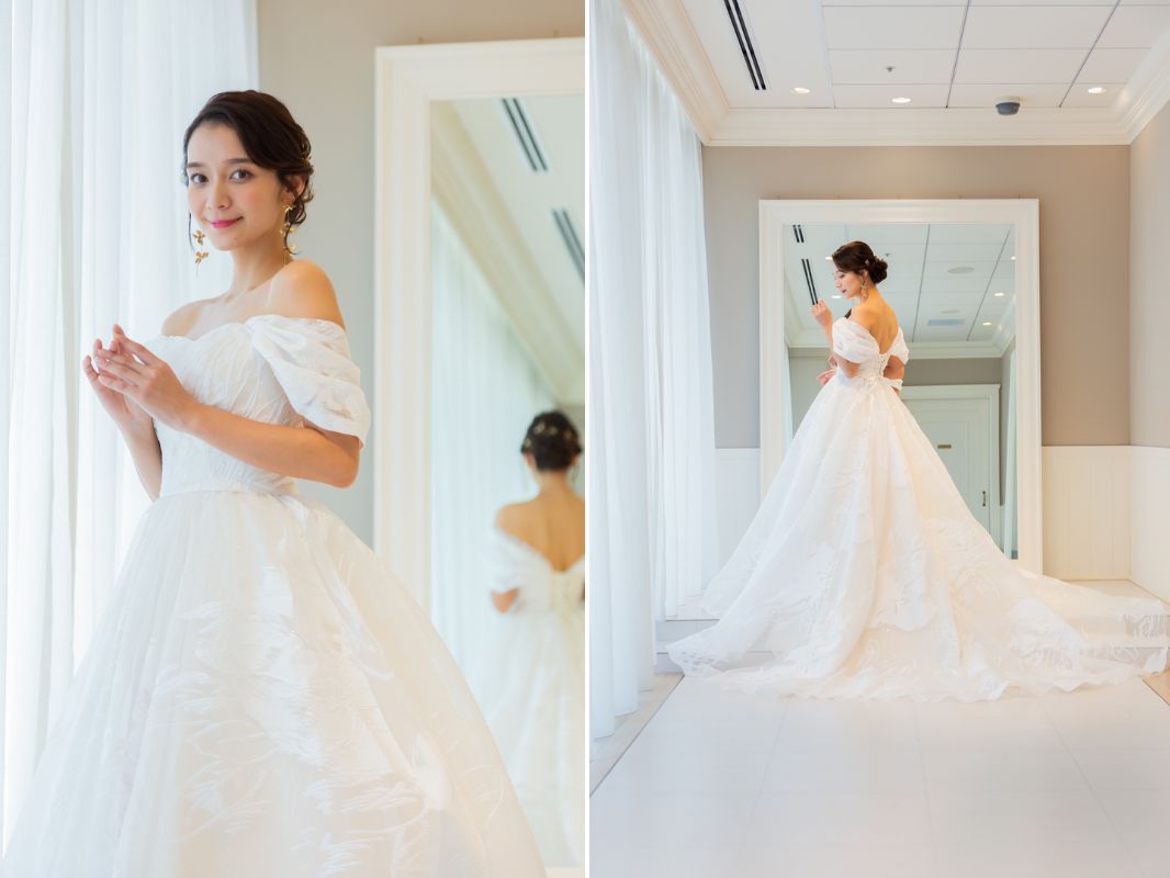 「ザ・テラス バイ・ザ・シー」を運営するアールイズ・ウエディングでは、オリジナルドレスブランド「アールイズ・ドレス」があり、ドレスの持ち込みはほぼないのだそう。それだけ洗練されたデザインのドレスが多彩にそろい、あらゆる新婦の希望を叶えるラインナップだということですよね。