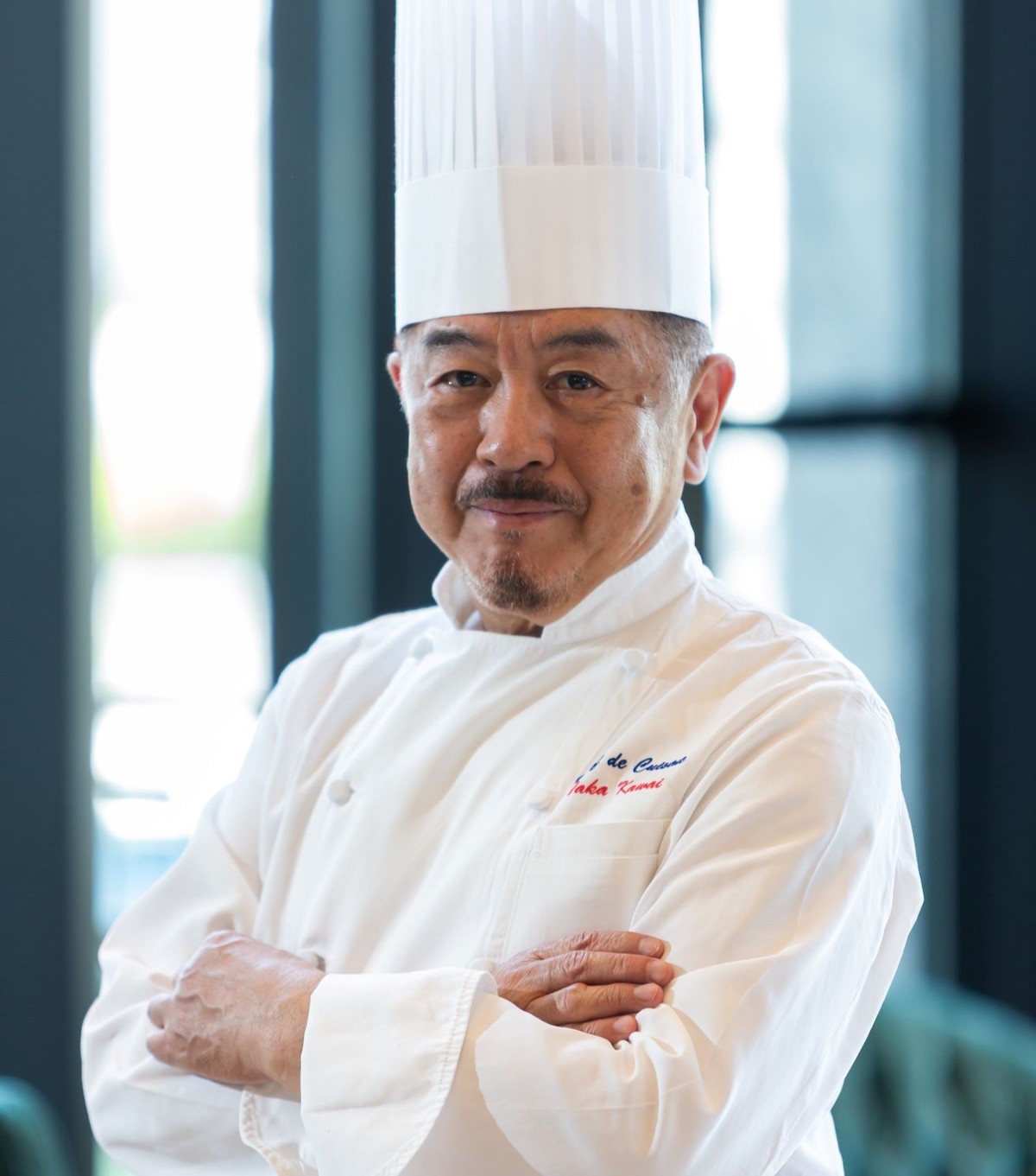 河合 隆良シェフ。アメリカ・トップクラスのフレンチレストラン「マサズ・サンフランシスコ」を、スーシェフとして全米No.1フレンチレストランに導き、その後、「パンパシフィックホテル サンフランシスコ」の総料理長を経て、「パシフィックホテル横浜」の総料理長に就任。エリザベス女王のガラディナーパーティーの料理担当や天皇陛下主催の晩さん会の指揮等の経歴も持つ
