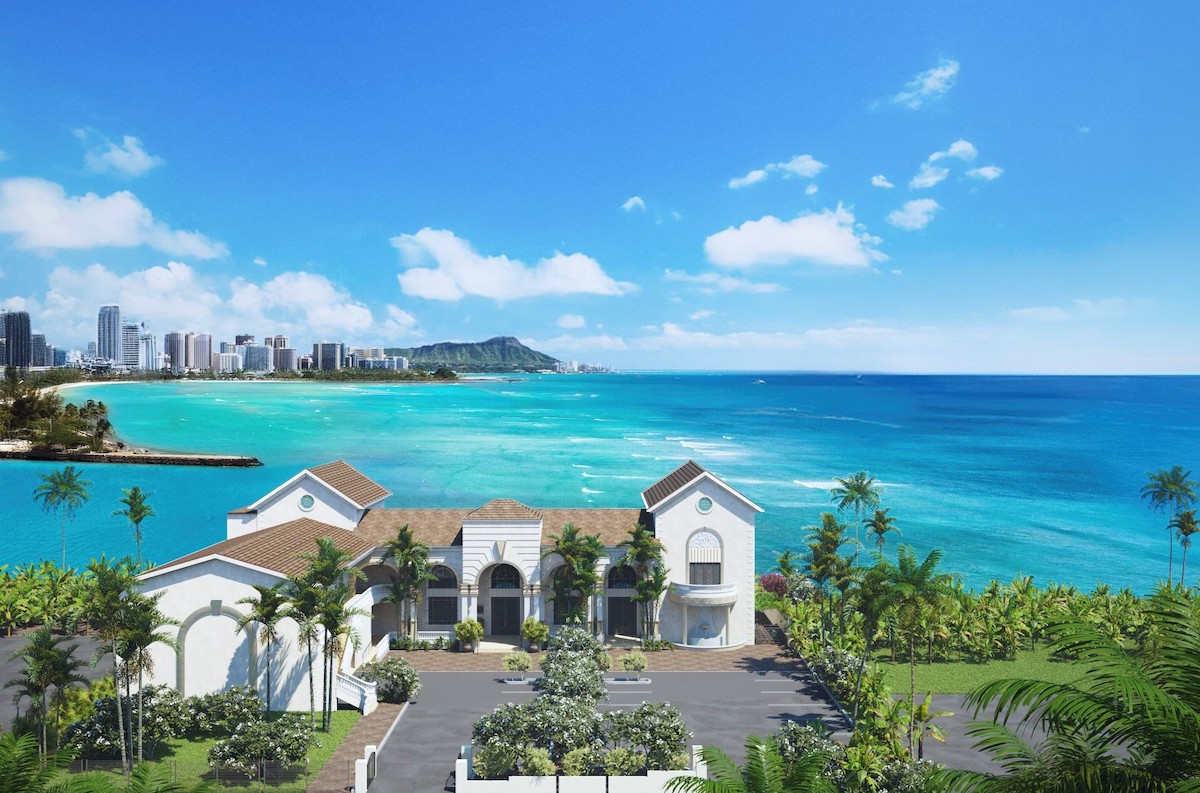 ハワイ・オアフ島に2026年1月オープンするウエディング会場「ザ・テラス バイ・ザ・シー」。支度から挙式、パーティー、お開き後の着替えまですべてが施設内で完結する、ブライダル複合施設です。