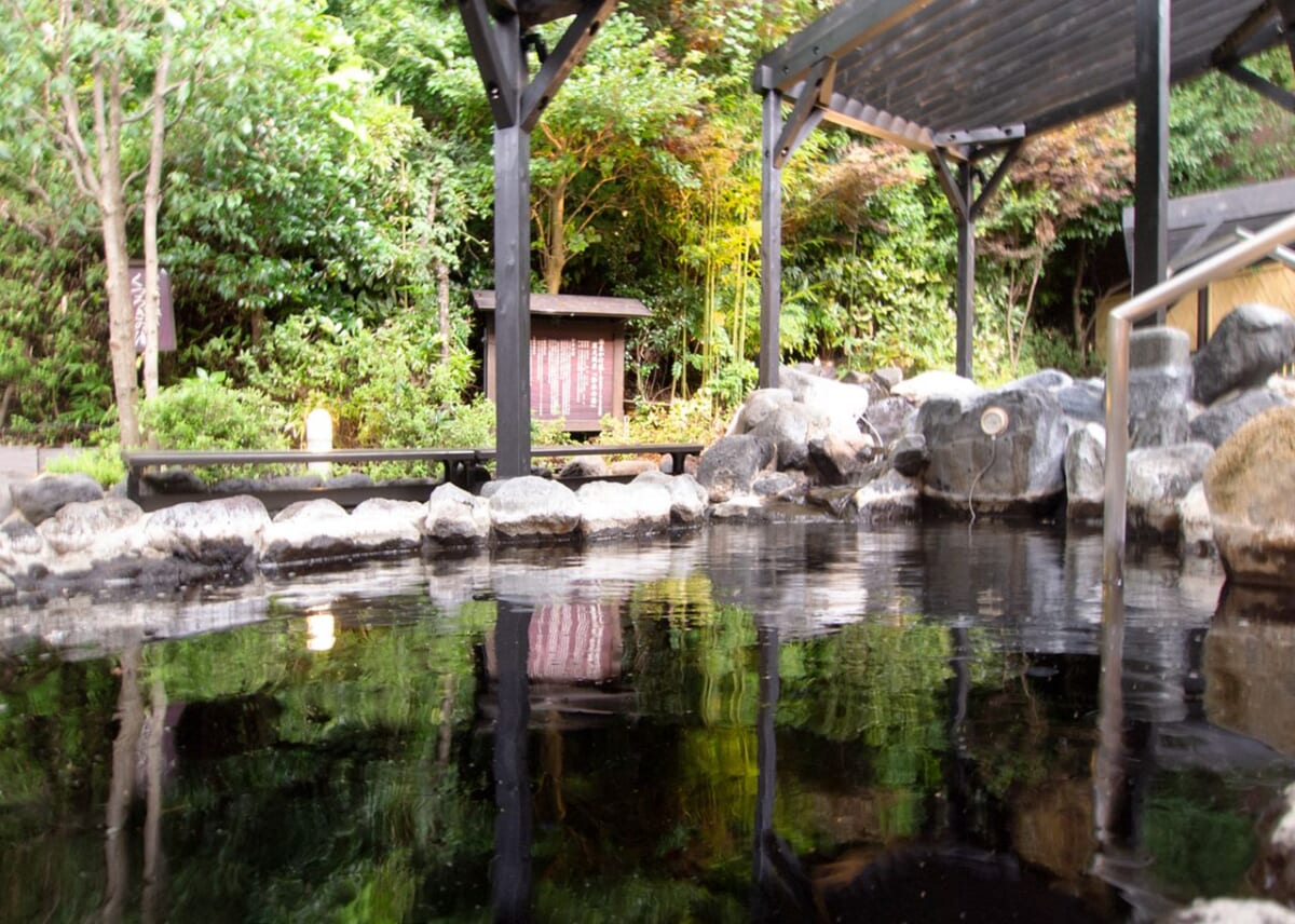 源泉かけ流しで「黒湯」が楽しめる露天風呂