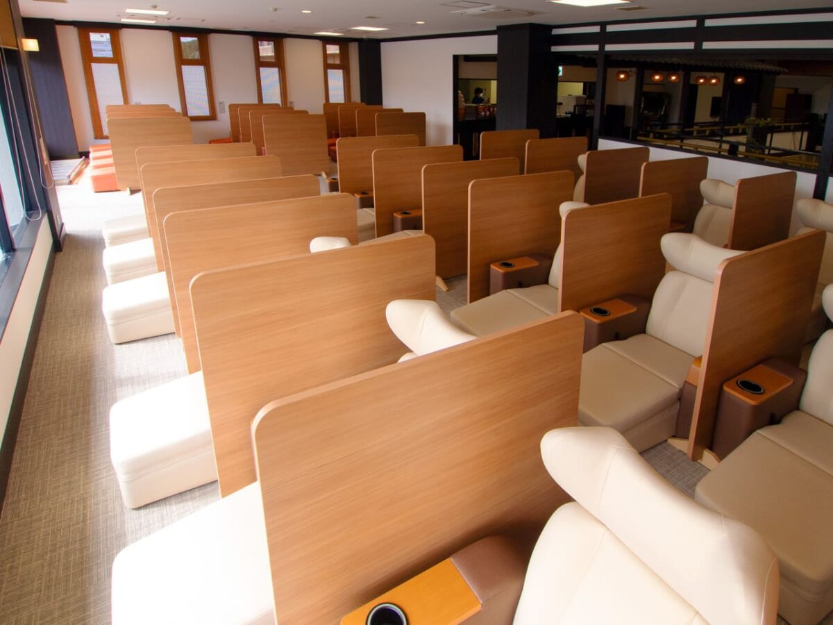 リクライニングシートと多数の漫画が揃った癒やしの空間。外の景色を感じながら、思う存分、読書が楽しめます。女性専用シートも用意。