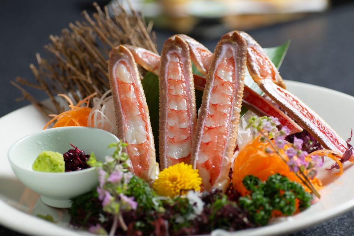 仕入れから調理、お客様への提供まで、蟹を知り尽くした職人のこだわりが詰まった逸品。蟹刺し、焼き蟹、茹で蟹、蟹鍋、蟹天婦羅、蟹雑炊など、さまざまな調理法で味わい尽くすことができます。