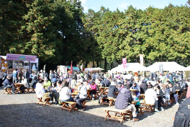 「ご当地グルめぐり」と題し、嵐山町観光協会員のキッチンカー、テントでの飲食店出店や新米、農産物などの物販、クラフトなどが販売されます。