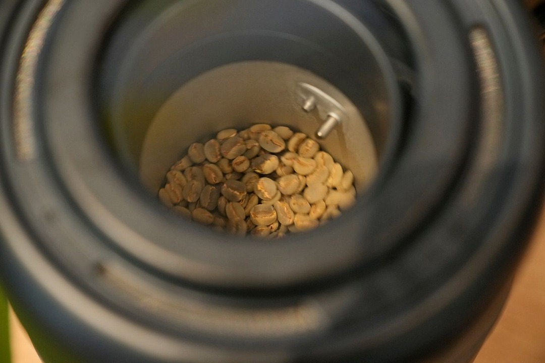 焙煎体験のコーヒー豆は、あらかじめ又吉さんが用意してくれた生豆を焙煎機にかけます。