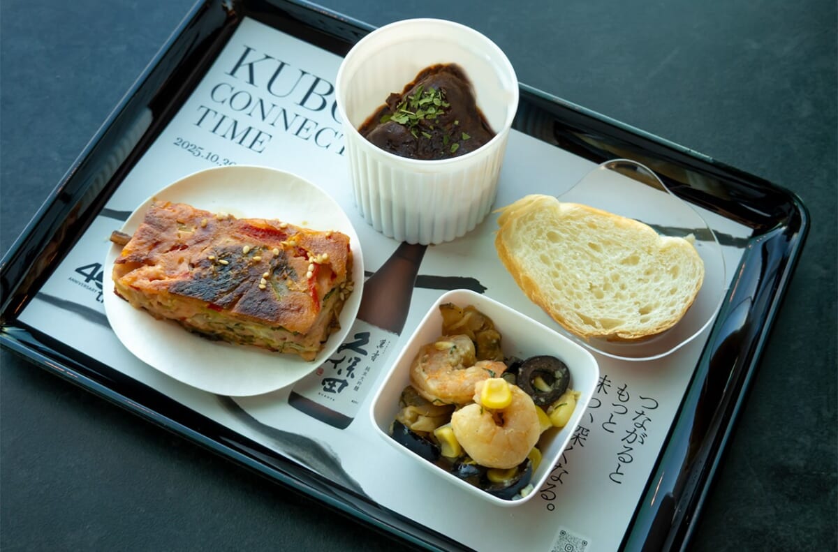 おいしいお酒を飲んだら欲しくなるのは粋なアテ。会場でお酒と一緒に楽しめる3種類のミールプレート(650円)は、おつまみと呼ぶにはもったいないほどに本格的な味で、久保田との相性はバッチリ。洋風のおつまみを中心に、“日本酒=和食”という従来のイメージを覆す、新感覚のペアリングを楽しめます。