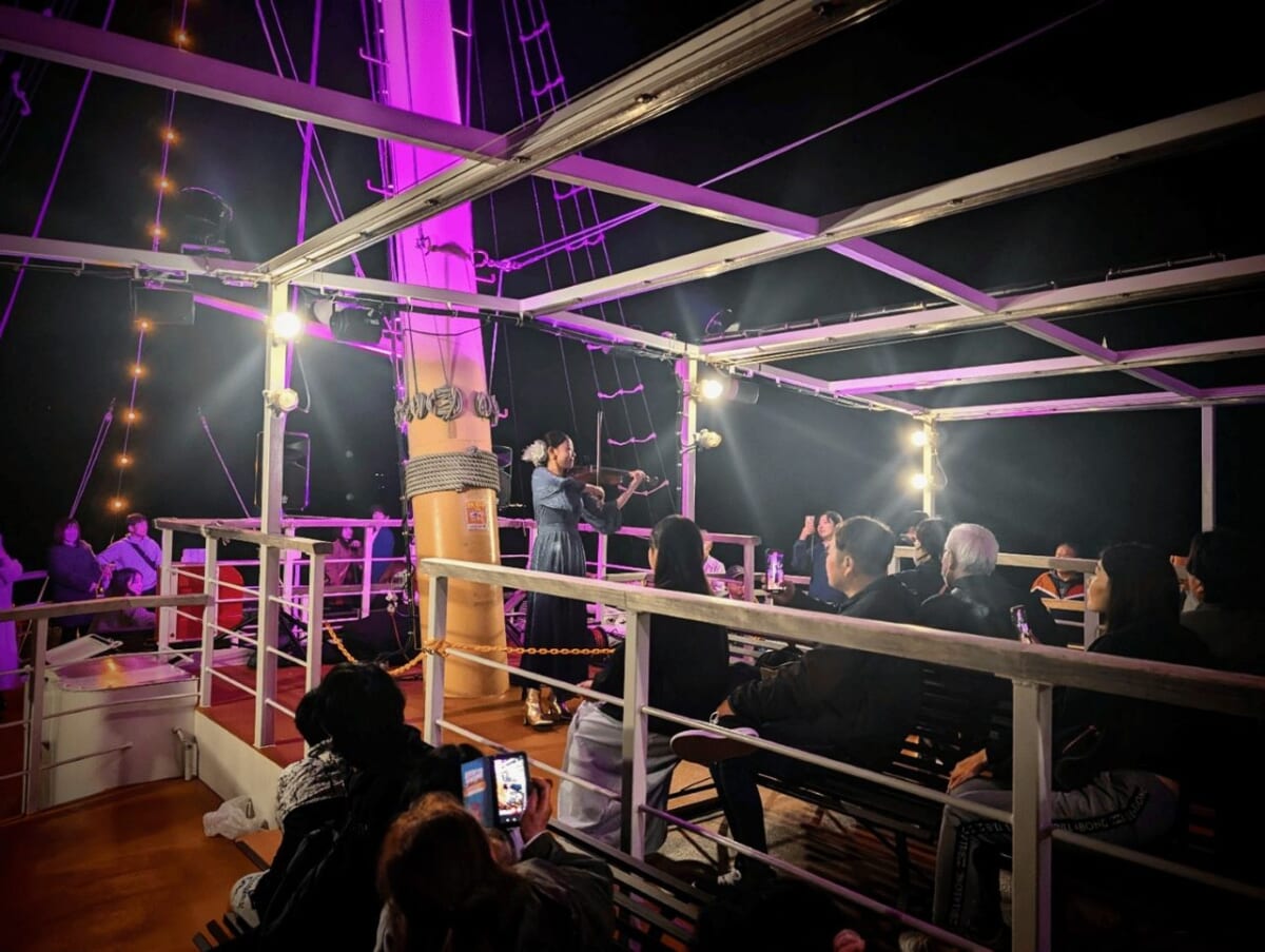 プロヴァイオリニスト・益子侑氏の船上生演奏を用意。その美しい音色と夜空の花火が織りなす、ロマンチックなひとときに浸ることができます。