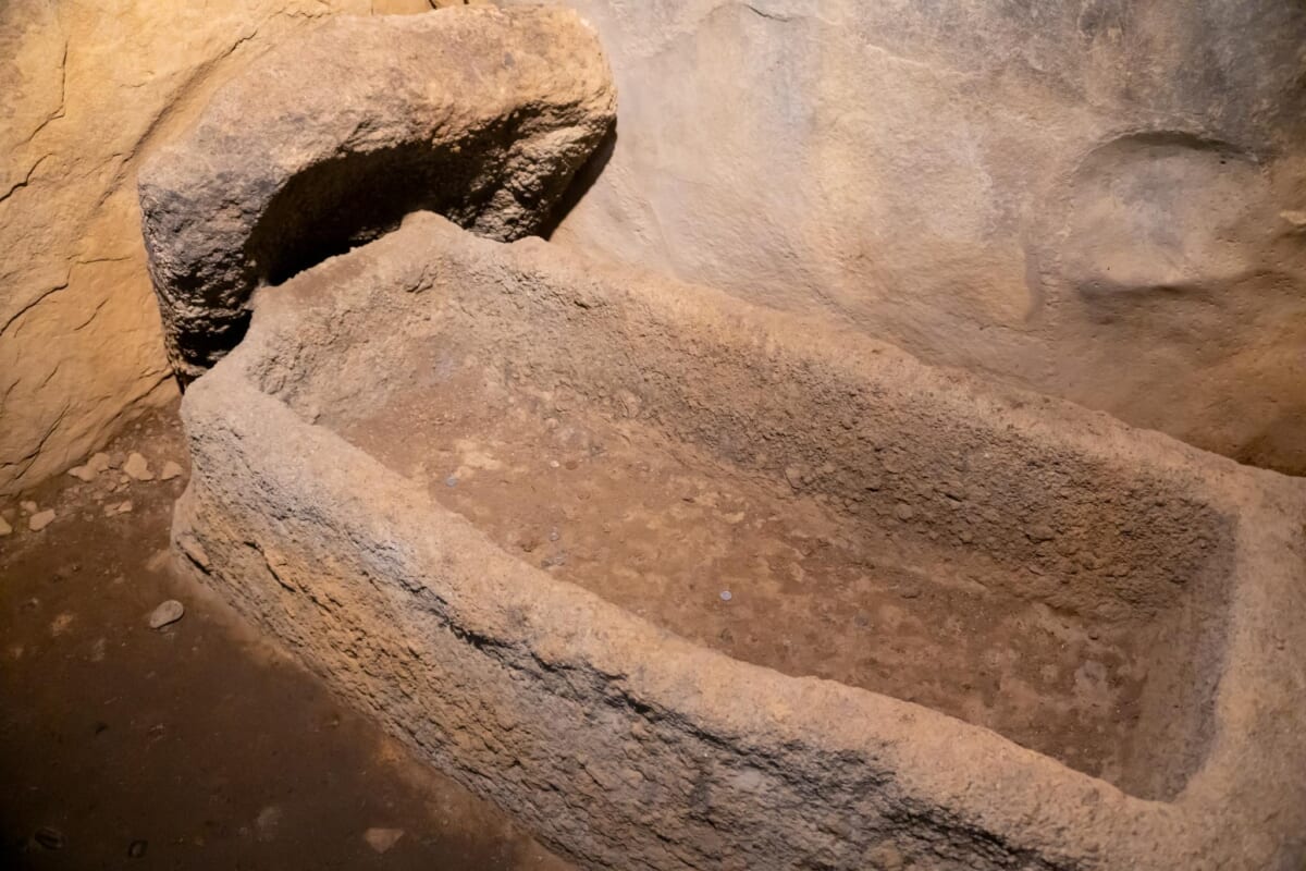 こんなふうにボコッと隆起した立体的なかたちは、国内の一般的な古墳というよりも、どこか韓国や大陸の古墳を思わせる雰囲気があります。そして驚きなのが、石室の中に石棺がまるっと残っていること。荒らされることなくそのままの状態で残っているのは本当に貴重で、訪れた人に“オープンに歴史を見せてくれている”ような親切さすら感じます。