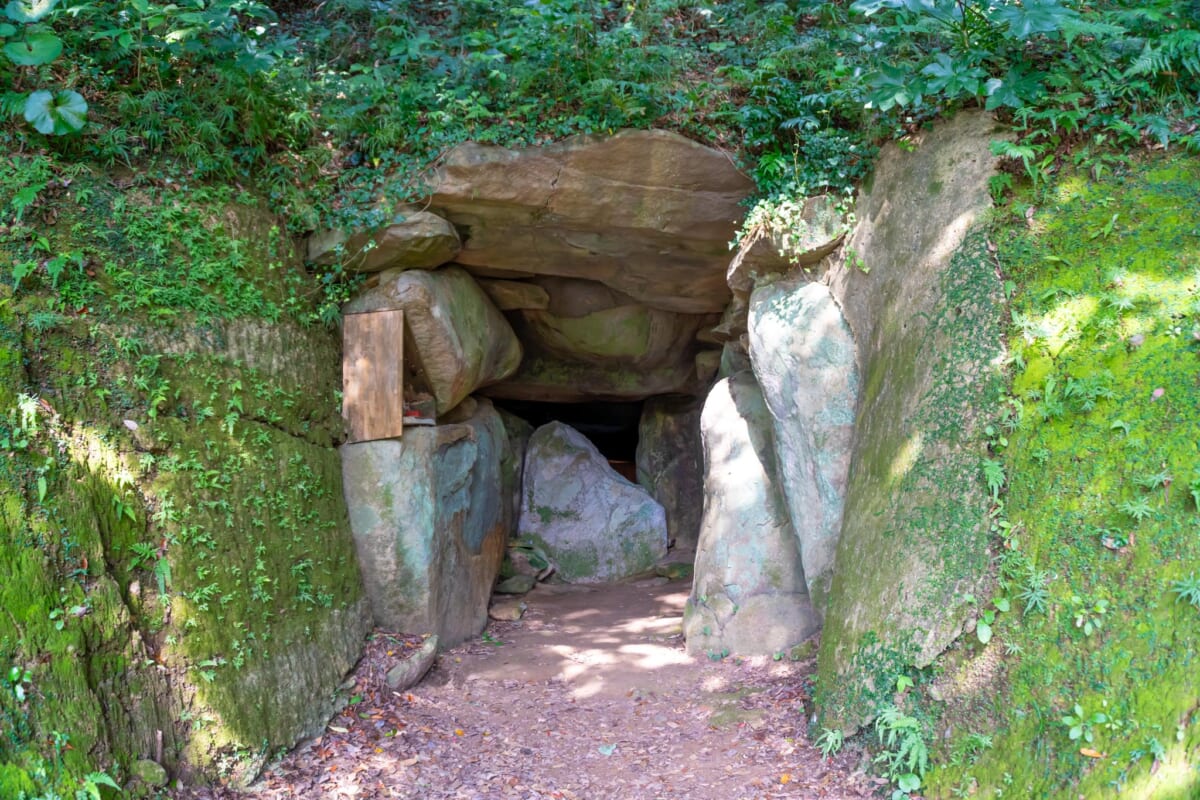 入口からも見える閉塞石の存在がまずニクい(笑)。一見、入りずらくもあるけど、臆せずに中へGO! 国内でも稀有な距離と複数の部屋を構えた石室を巡れば、古代遺跡を冒険するインディー・ジョーンズのような気分に。懐中電灯と軍手を装備して、アドベンチャー気分を体験してみて!