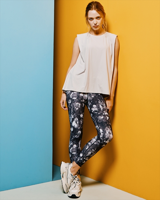 オリジナルプリントが施されたブラトップとレギンスは、柔らかなカラーリングで肌なじみのよさが魅力。ストレッチ性に優れた水着素材を使用し、マリンスポーツからトレーニングまで幅広く活躍してくれそうです。
