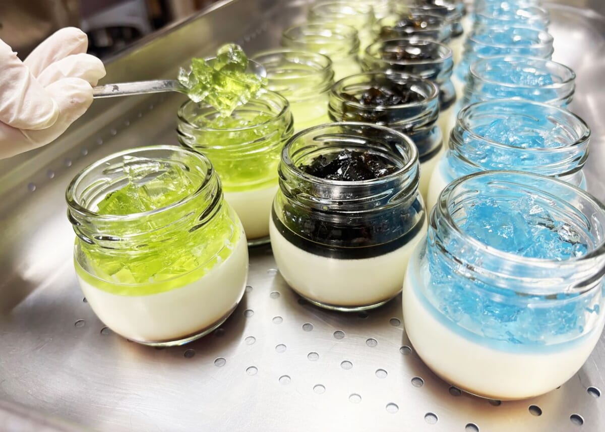 アルプスをイメージしてジュレをプリンの上に