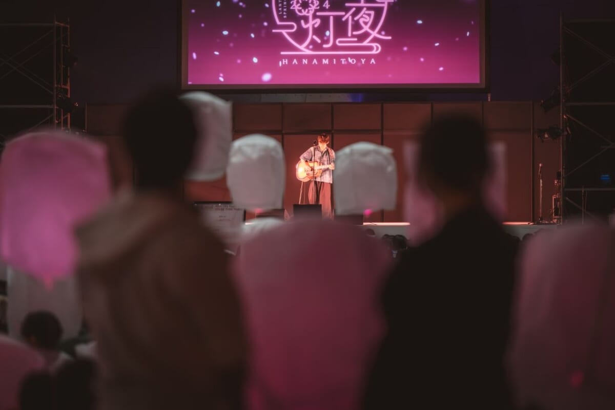 最大1,500個のスカイランタンが一斉に浮かびあがる「スカイランタンリリース」は、約15分の間、アーティストの演奏と共に、桜色のランタンにひたる時間です。みんなで明るい桜を満開に咲かせましょう!