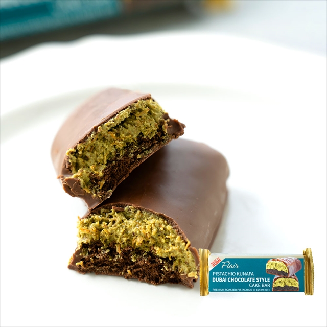 成城石井がドバイから直輸入した商品。濃厚な味わいのピスタチオペーストと、カダイフのザクザク食感が楽しめます。土台がケーキ生地なので、食べ応えもあり!
