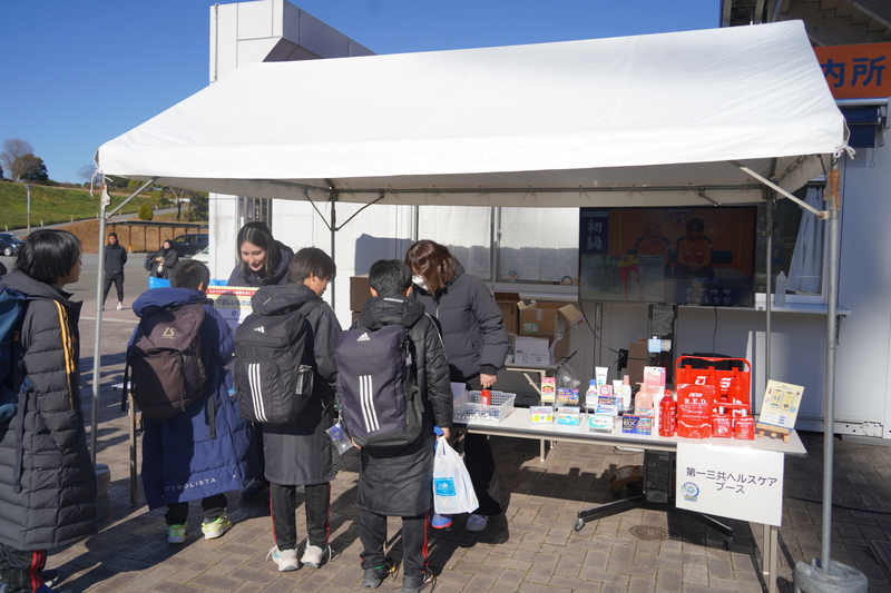 ピッチ上の熱戦もさることながら、会場の一角に設置された第一三共ヘルスケアのブースには子どもたちや保護者が集まり賑わいを見せた。