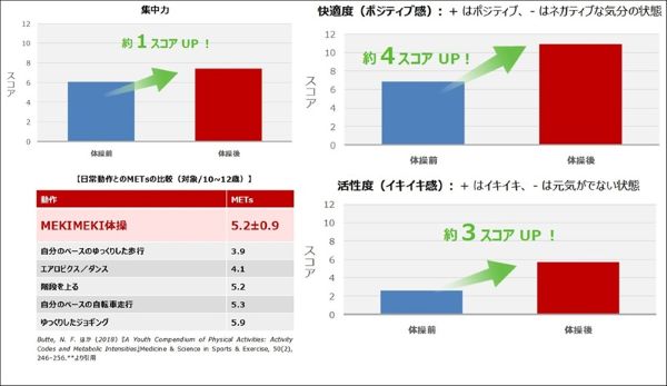 MEKIMEKI体操が実際にどのような効果をもたらすのか。2026年1~2月、東京都国分寺市立第七小学校の5年生を対象とした検証※1(早稲田大学・岡浩一朗教授らによる共同研究)では、以下のようなポジティブな傾向が示された。